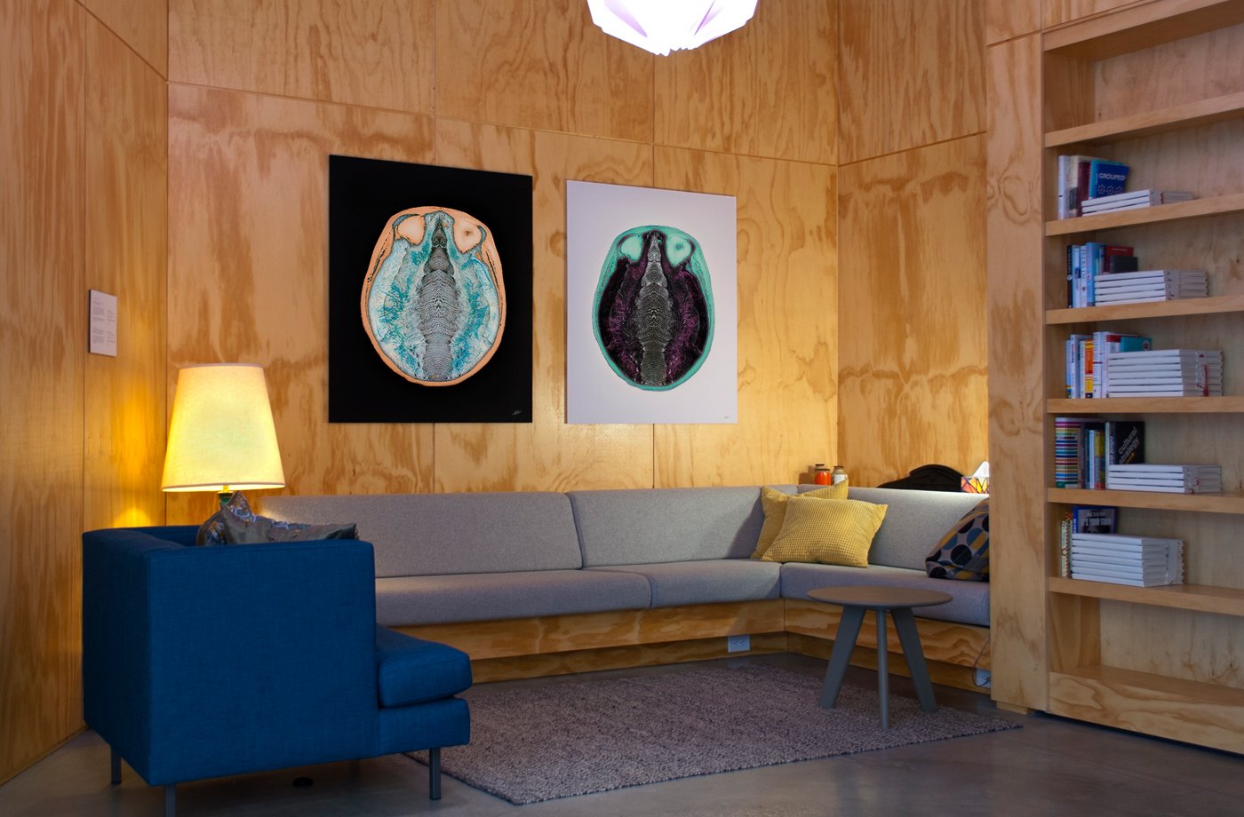 Bering Bearing -1 (Diptych). Installation photo, THNK School of Creative Leadership, Vancouver. CT-SCAN + NASA-EO images