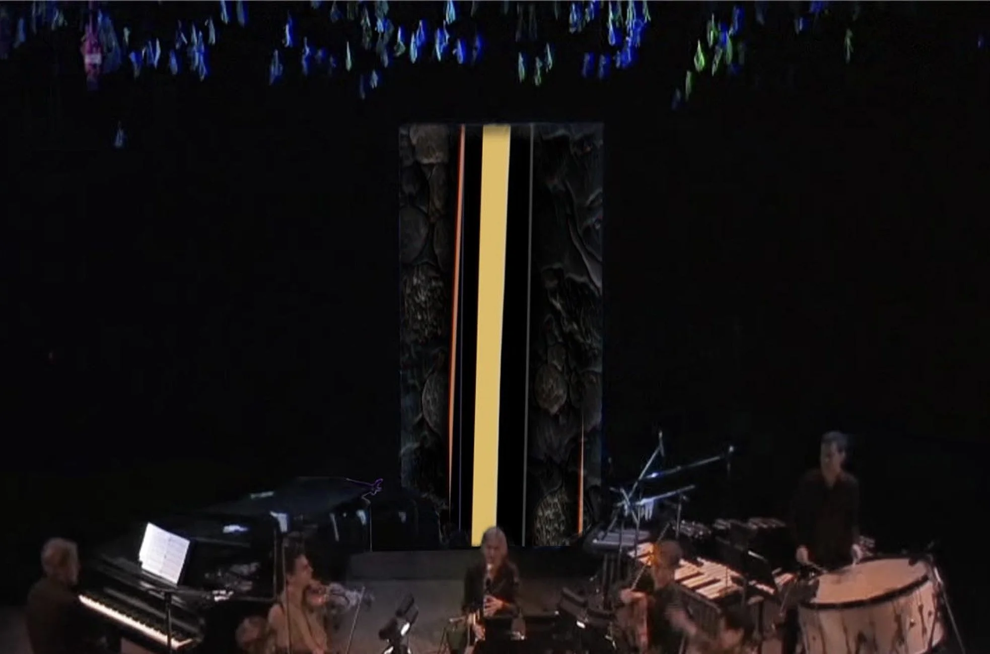 Roy Kiyooka was an inspirational figure in the Canadian art scene. Awarded the Order of Canada, he was a painter, poet, performance artist, filmmaker and musician. Marginalia was a way of re-engaging with his work and ideas. An ethereal set for an interdisciplinary new music performance in which projected video enveloped performers and integrated the audience into the piece. Winner of the 2008 Rio Tinto Alcan Performing Arts Award.