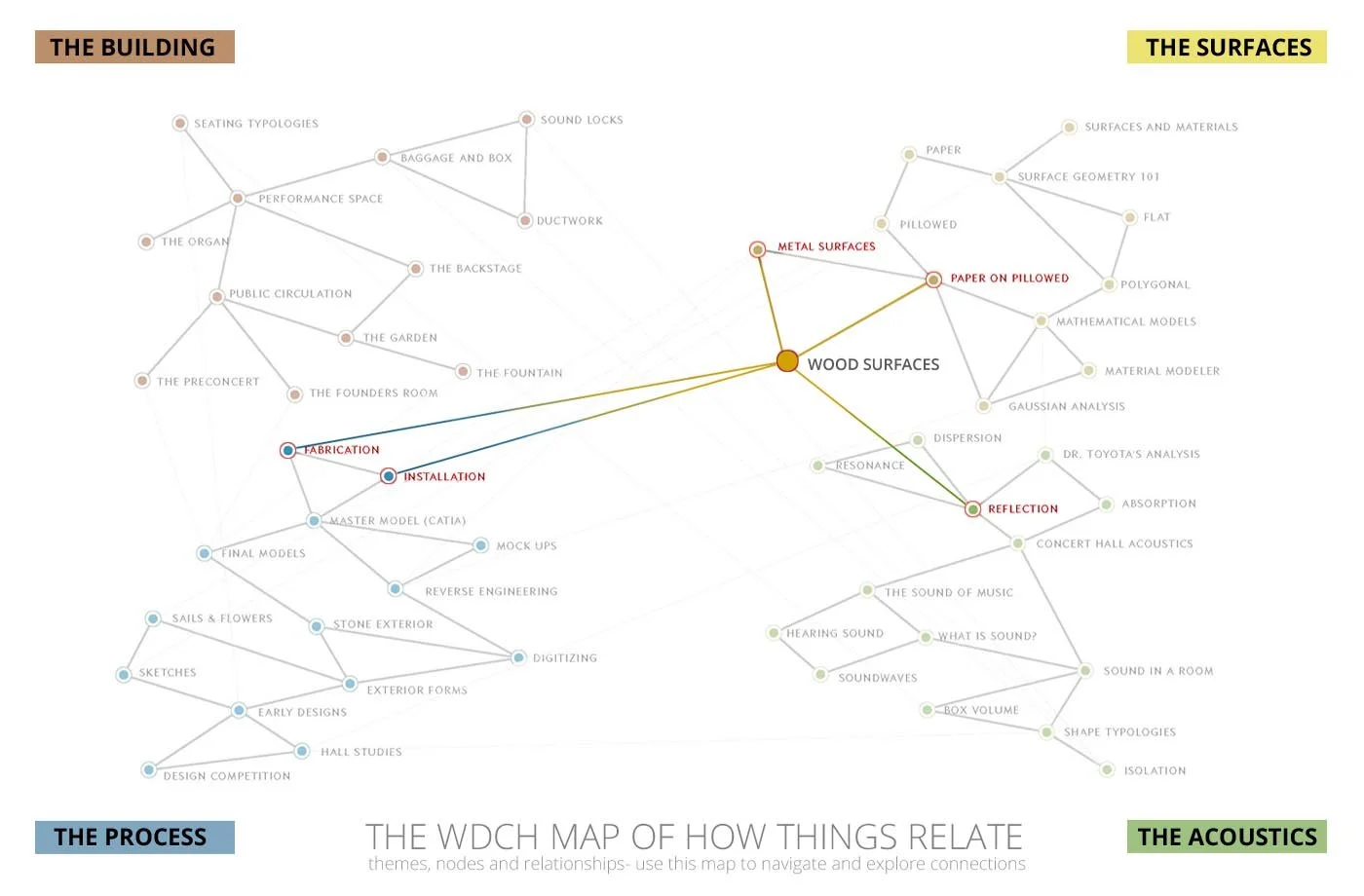 Produced an interactive system used by concert hall docents and visitors to understand Gehry’s design methodology and the interdependencies shaping the building. The project established navigation-in-context as a model for communicating complex systems and later informed broader case-study and exhibition work.